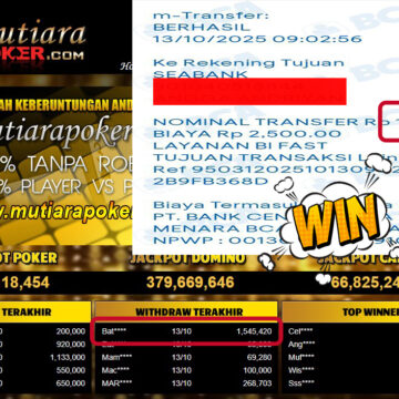 Bukti Withdraw ( 1,545,420,- ) Member Setia MutiaraPoker