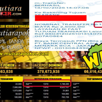 Bukti Withdraw ( 1,748,430,- ) Member Setia MutiaraPoker