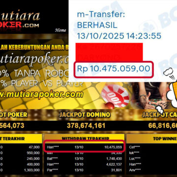 Bukti Withdraw ( 10,475,059,- ) Member Setia MutiaraPoker