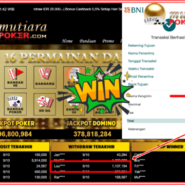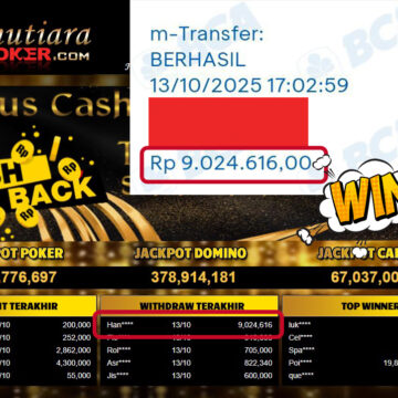 Bukti Withdraw ( 9,024,616,- ) Member Setia MutiaraPoker