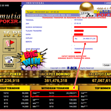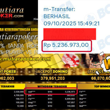Bukti Withdraw ( 8,709,992,- ) Member Setia MutiaraPoker