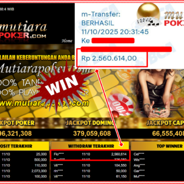 Bukti Withdraw ( 2,560,614,- ) Member Setia MutiaraPoker
