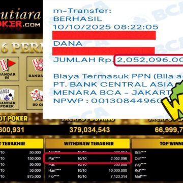 Bukti Withdraw ( 2,052,096,- ) Member Setia MutiaraPoker