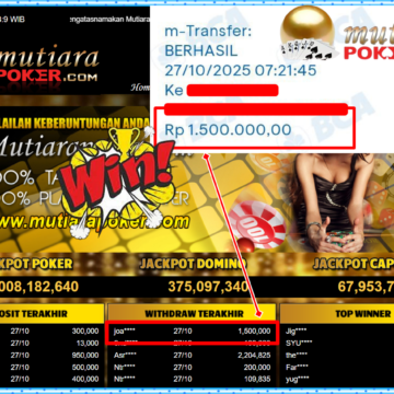 Bukti Withdraw ( 1,500,000,- ) Member Setia MutiaraPoker