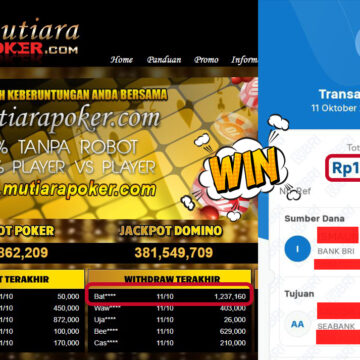 Bukti Withdraw ( 1,237,160,- ) Member Setia MutiaraPoker
