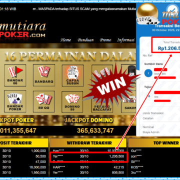 Bukti Withdraw ( 1,206,500,- ) Member Setia MutiaraPoker