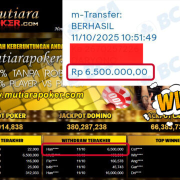 Bukti Withdraw (6,500,000,- ) Member Setia MutiaraPoker
