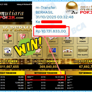 Bukti Withdraw ( 10,131,833,- ) Member Setia MutiaraPoker