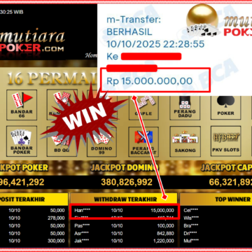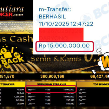 Bukti Withdraw ( 15,000,000,- ) Member Setia MutiaraPoker