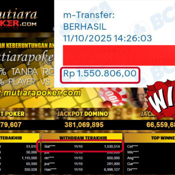 Bukti Withdraw ( 1,550,806,- ) Member Setia MutiaraPoker