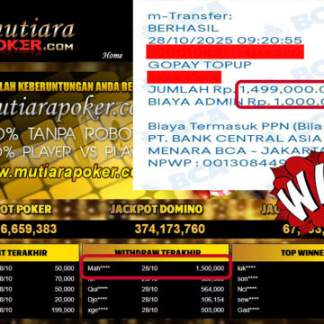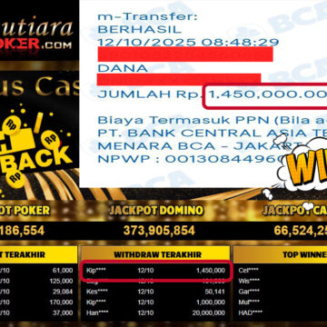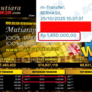 Bukti Withdraw ( 1,450,000,- ) Member Setia MutiaraPoker