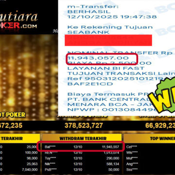 Bukti Withdraw ( 11,945,557,- ) Member Setia MutiaraPoker