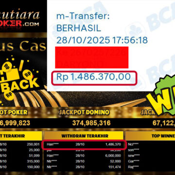 Bukti Withdraw ( 1,486,370,- ) Member Setia MutiaraPoker