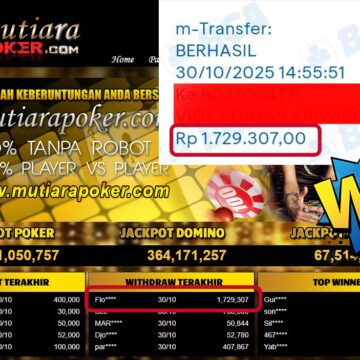 Bukti Withdraw ( 1,729,307,- ) Member Setia MutiaraPoker