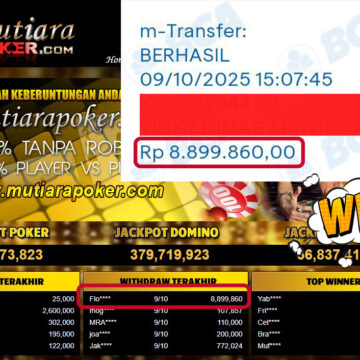 Bukti Withdraw ( 8,899,860,- ) Member Setia MutiaraPoker