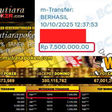 Bukti Withdraw (7,500,000,- ) Member Setia MutiaraPoker