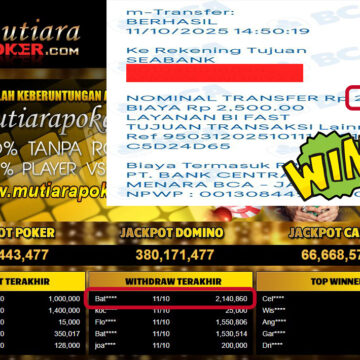 Bukti Withdraw ( 2,140,860,- ) Member Setia MutiaraPoker