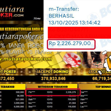 Bukti Withdraw ( 2,226,279,- ) Member Setia MutiaraPoker