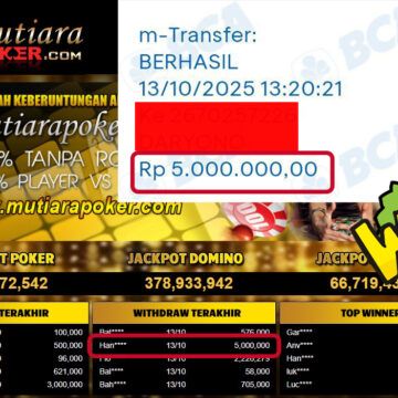 Bukti Withdraw ( 5,000,000,- ) Member Setia MutiaraPoker