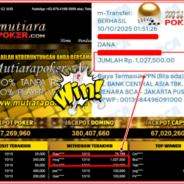 Bukti Withdraw ( 1,027,500,- ) Member Setia MutiaraPoker