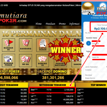 Bukti Withdraw ( 2,100,000,- ) Member Setia MutiaraPoker