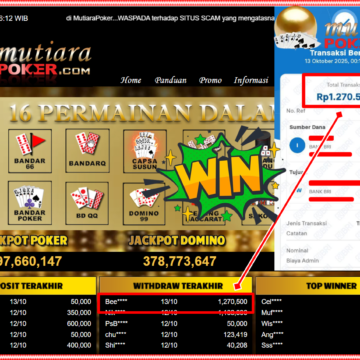 Bukti Withdraw ( 1,270,500,- ) Member Setia MutiaraPoker