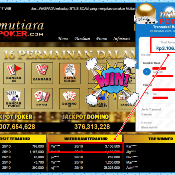 Bukti Withdraw ( 3,106,500,- ) Member Setia MutiaraPoker