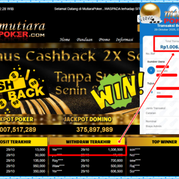 Bukti Withdraw ( 1,009,000,- ) Member Setia MutiaraPoker