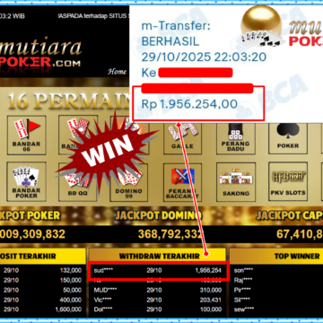 Bukti Withdraw ( 1,956,254,- ) Member Setia MutiaraPoker