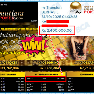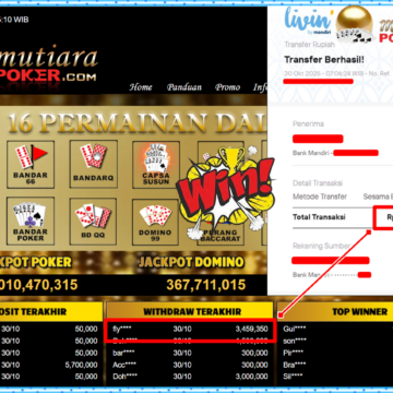 Bukti Withdraw ( 2,400,000,- ) Member Setia MutiaraPoker