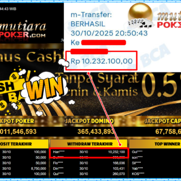 Bukti Withdraw ( 10,232,100,- ) Member Setia MutiaraPoker