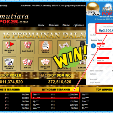 Bukti Withdraw ( 2,200,000,- ) Member Setia MutiaraPoker