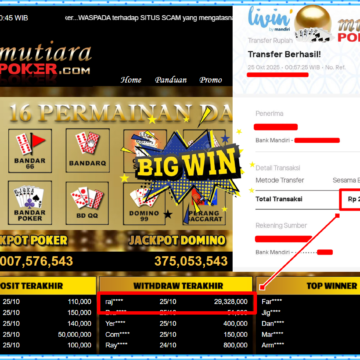 Bukti Withdraw ( 29,328,000,- ) Member Setia MutiaraPoker