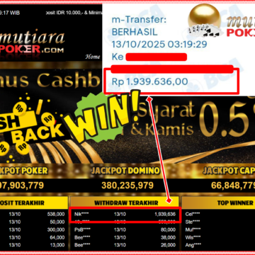 Bukti Withdraw ( 1,939,636,- ) Member Setia MutiaraPoker