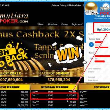 Bukti Withdraw ( 1,220,000,- ) Member Setia MutiaraPoker