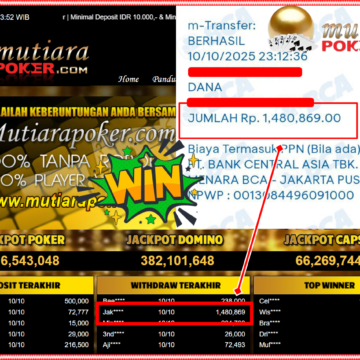 Bukti Withdraw ( 1,480,869,- ) Member Setia MutiaraPoker
