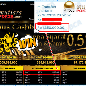Bukti Withdraw ( 1,350,000,- ) Member Setia MutiaraPoker