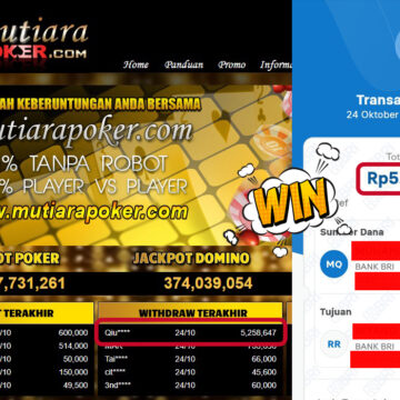 Bukti Withdraw ( 5,258,647,- ) Member Setia MutiaraPoker