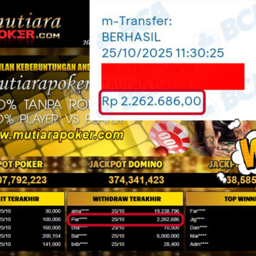 Bukti Withdraw ( 2,262,686,- ) Member Setia MutiaraPoker