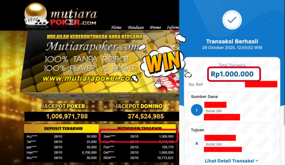 Bukti Withdraw ( 1,000,000,- ) Member Setia MutiaraPoker