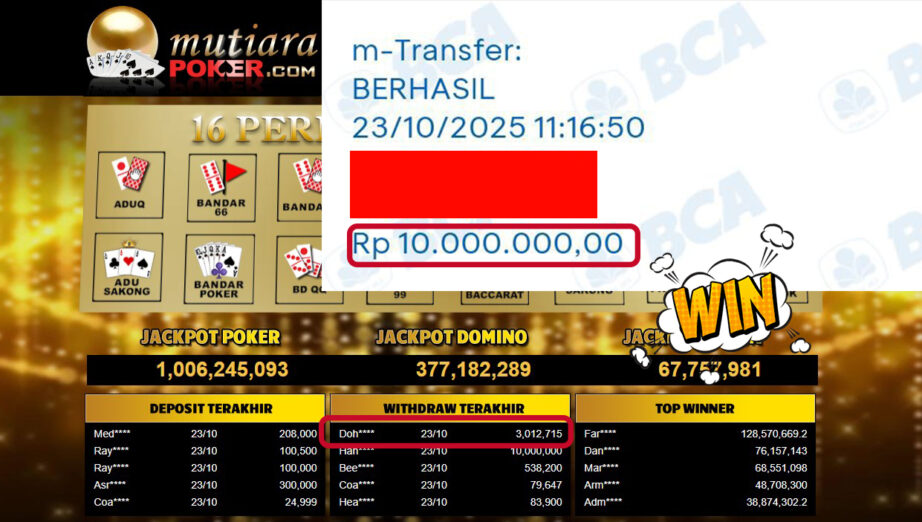 Bukti Withdraw ( 10,000,000,- ) Member Setia MutiaraPokerc