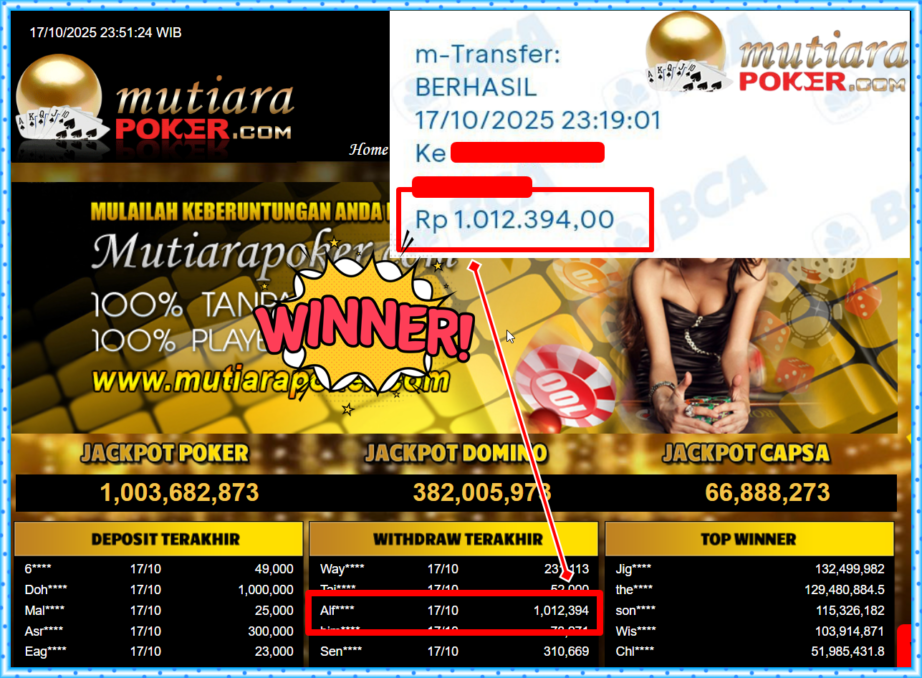 Bukti Withdraw ( 1,012,394,- ) Member Setia MutiaraPoker