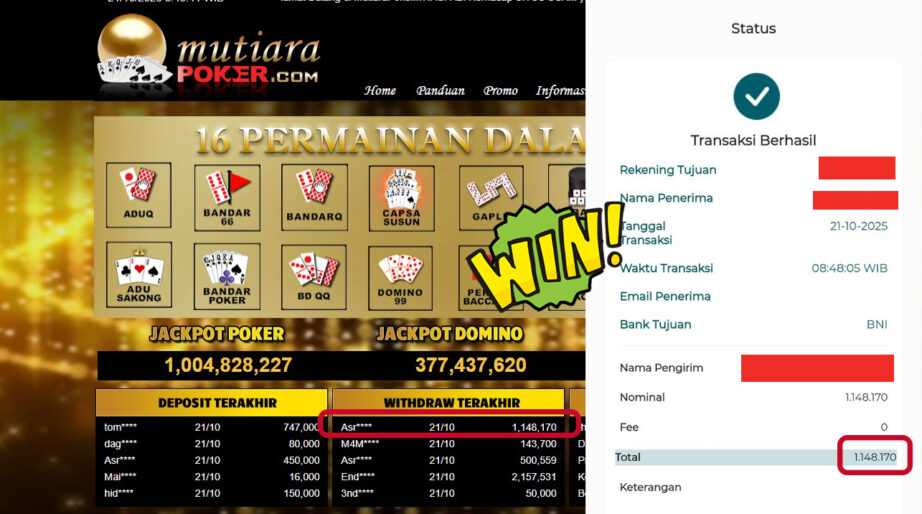 Bukti Withdraw ( 1,148,170,- ) Member Setia MutiaraPokerc