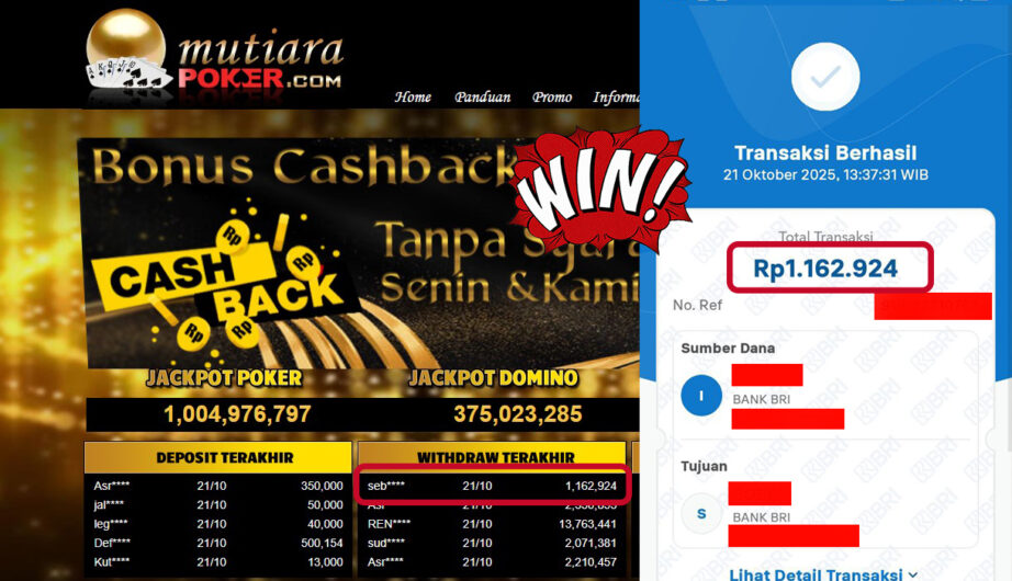 Bukti Withdraw ( 1,162,924,- ) Member Setia MutiaraPokerc
