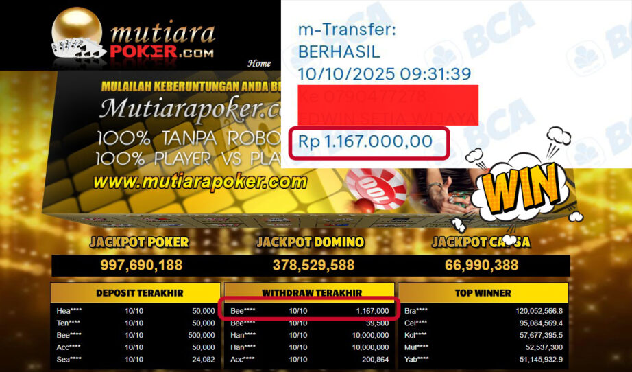 Bukti Withdraw (1,167,000,- ) Member Setia MutiaraPoker