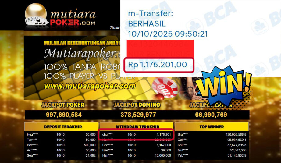 Bukti Withdraw (1,176,201,- ) Member Setia MutiaraPoker