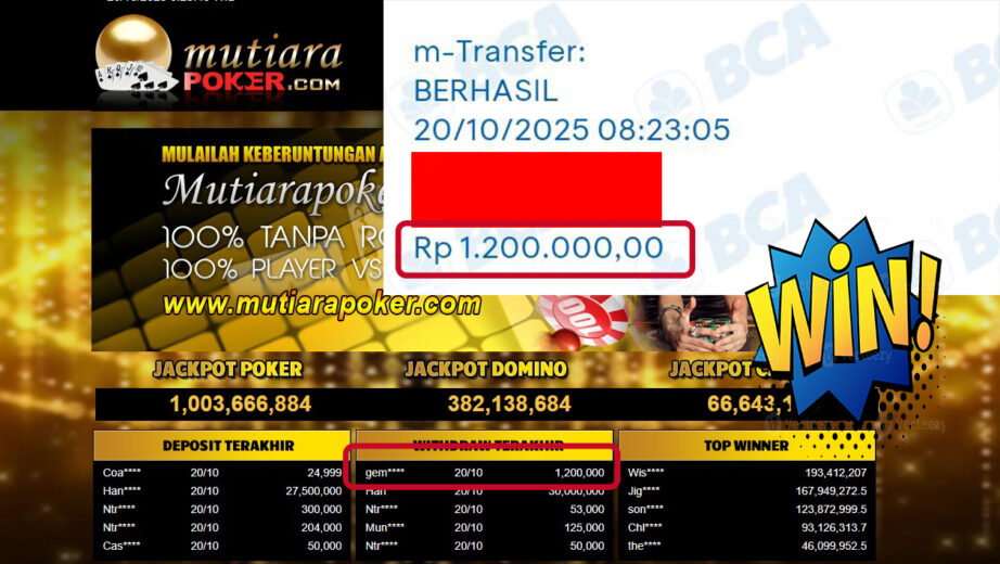 Bukti Withdraw ( 1,200,000,- ) Member Setia MutiaraPoker