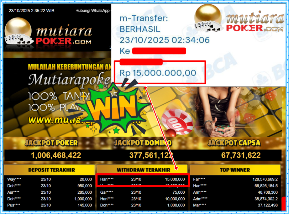 Bukti Withdraw ( 15,000,000,- ) Member Setia MutiaraPoker