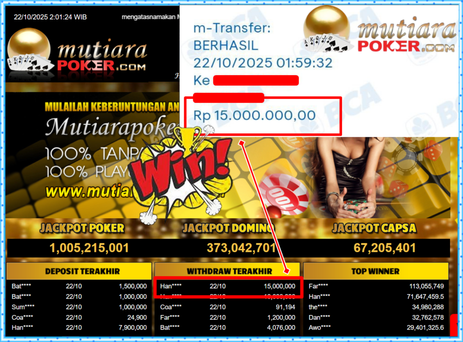 Bukti Withdraw ( 15,000,000,- ) Member Setia MutiaraPokerc