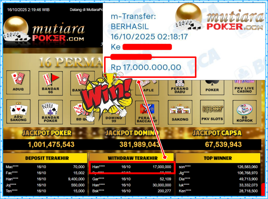 Bukti Withdraw ( 17,000,000,- ) Member Setia MutiaraPoker